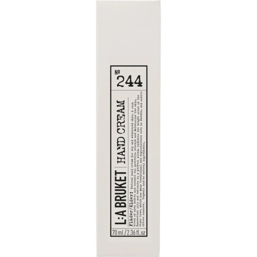 Onder de hand- en voetcrèmes van L:A BRUKET wordt dit product gekenmerkt door zijn multi-werking voor lichaam en geest. Zo bevat 244 Handcrème Elder talrijke plantenextracten voor regeneratie. Het huidverzorgingsproduct is ook verrijkt met angststillende essentiële oliën.