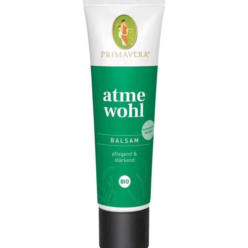 De frisse en warm ruikende Atmewohl balsem van PRIMAVERA bevat essentiële eucalyptus en Zwitserse pijnboomolie in kostbare amandelolie. Als je het op je borst of rug wrijft, voel je het revitaliserende en verkwikkende effect. De balsem voedt en versterkt. Preventieve verzorging is vooral belangrijk in de koude maanden van het jaar. Verwen je droge, geïrriteerde of rode neus met de Atmewohl balsem van PRIMAVERA.De veganistische biologische cosmetica uit het Gesundwohl-assortiment is gemaakt van 100 procent puur natuurlijke etherische oliën. De omhullende geursamenstelling met eucalyptus en zwitserse den heeft een reinigende en verkwikkende werking en zet aan tot diep ademhalen, terwijl de amandelolie de geïrriteerde huid voedt en hydrateert. De balsem is bijzonder heilzaam voor gevoelige neuzen.