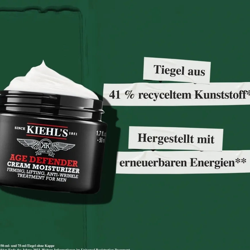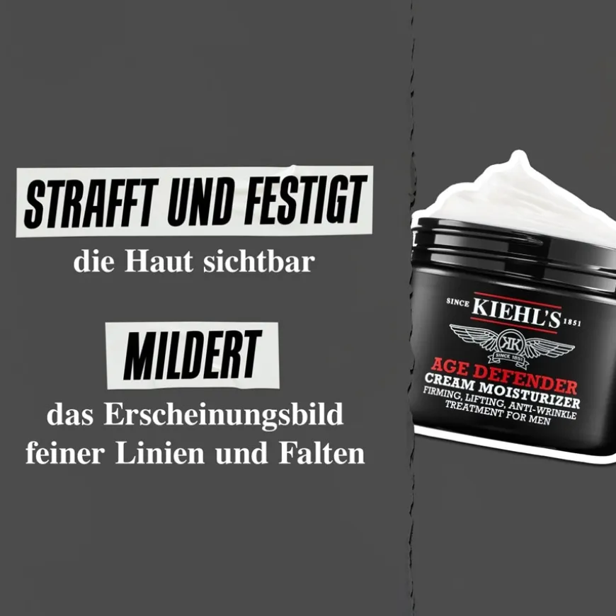 De anti-aging verzorging Age Defender Moisturizer van Kiehl’s is de ultimale anti-rimpel gezichtscrème voor mannen. Dankzij het liftende effect heeft deze huidverstevigende moisturizer een dubbel effect: De huid wordt intensief gehydrateerd en tegelijkertijd strakker, waardoor rimpels en lijntjes zichtbaar verminderen. Dit wordt mogelijk gemaakt door een combinatie van cafeïne, lijnzaadextract en sojaproteïne. Terwijl het vette lijnzaad de stevigheid van de huid verhoogt en rimpels vermindert, vermindert soja-eiwit de zichtbaarheid van ruwheid en rimpels. Daarnaast helpt de geurloze cafeïne wallen te verminderen. De revitaliserende formule heeft ook een zacht exfoliërend effect, waardoor de huid gladder en egaler wordt.De anti-aging gezichtsverzorging wordt na het reinigen en scheren op de huid aangebracht en zachtjes ingemasseerd. Idealiter gebruik je het serum uit de serie vóór de Age Defender om het effect van beide producten te versterken.