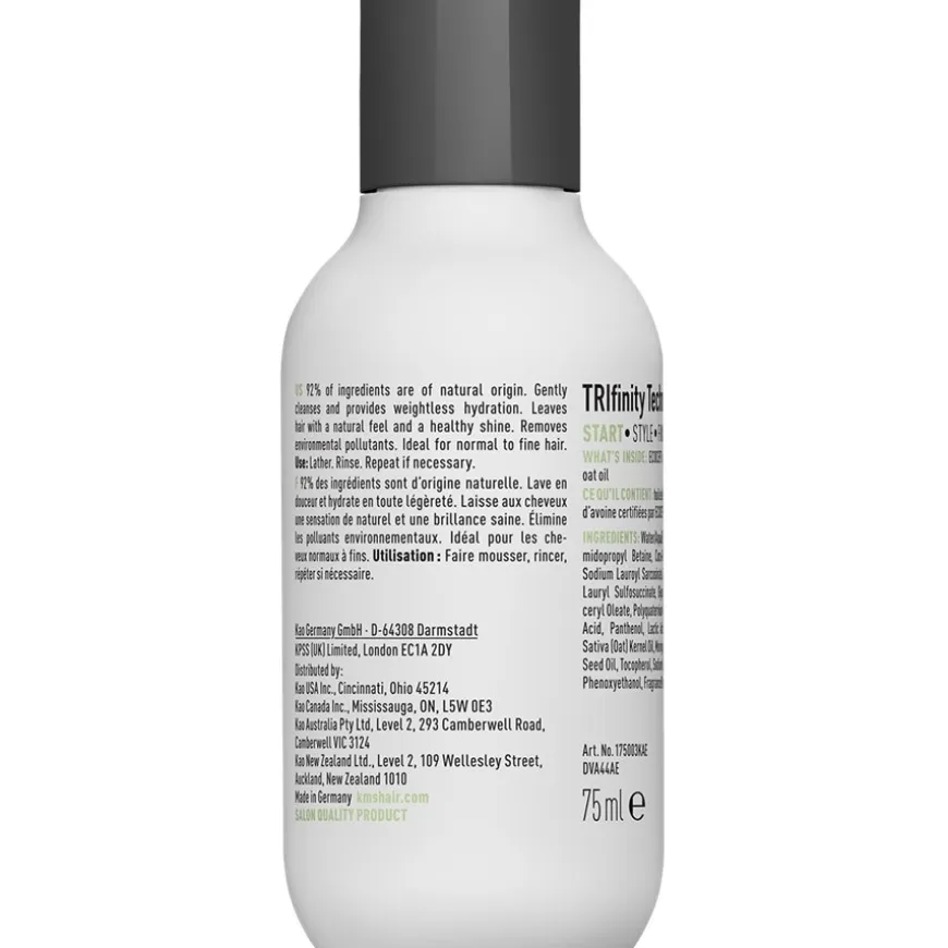De speciale eigenschap van Conscious Style Everyday Shampoo van KMS is het AHA Structure Complex, dat niet alleen de binnenste en buitenste structuur van het haar verbetert met behulp van organische zuren, maar het haar ook ideaal voorbereidt op latere styling. Naast Lactinezuur, dat betrokken is bij de wederopbouw van de binnenkant van het haar, bevat het ook Polyquaternium-53, dat de oppervlakte van het haar glad maakt. Voedende panthenol hydrateert, terwijl antioxidant moringazaadolie beschermt tegen schadelijke invloeden van buitenaf. Last but not least bevat de shampoo zachte en verzachtende haverolie, die de natuurlijke balans van de hoofdhuid helpt te behouden. Dit product bevat geen sulfaten, siliconen, microplastics, minerale oliën, kunstmatige kleurstoffen of ingrediënten van dierlijke oorsprong.