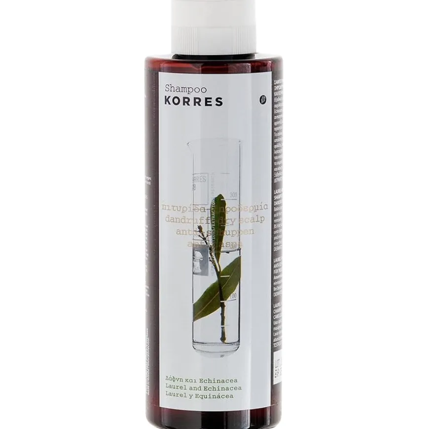 Korres Laurier en Echinacea anti-roos shampoo neutraliseert jeuk en bevordert een gezond evenwicht van de hoofdhuid met zijn combinatie van echinacea- en laurierextracten. Dit is op zijn beurt weer essentieel: als de huidflora van de hoofdhuid uit balans is, zijn irritatie, jeuk en zichtbare roos het gevolg. Provitamine B5 in het haarverzorgingsproduct geeft het haar meer soepelheid, terwijl de exfoliërende werking van BHA de poriën vrijmaakt – waardoor ze weer kunnen ademen en regenereren. De shampoo kan en moet één keer per dag gebruikt worden. Kort laten inwerken na het inmasseren.