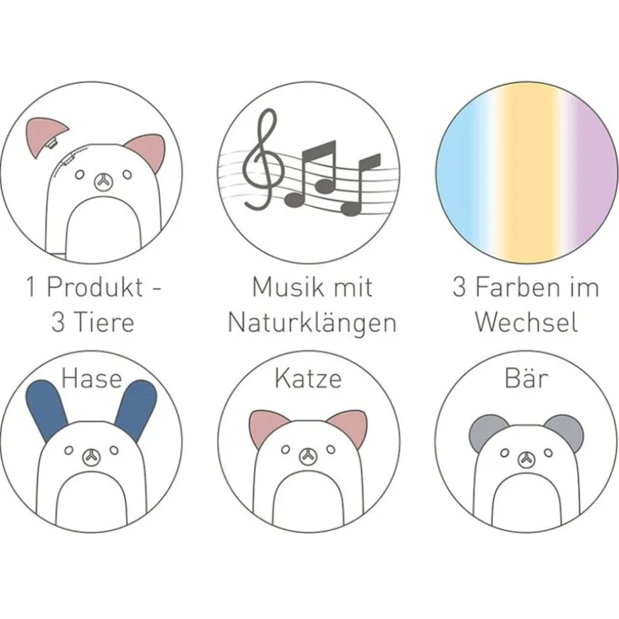 Naast een verkwikkende geurbeleving zorgt dit type geurlamp voor een aangenaam ruimteklimaat. Naast een paar druppels etherische olie of een 100 procent puur geurmengsel wordt er ook 145 milliliter water gebruikt om de lucht te bevochtigen. Dankzij een groot aantal instelmogelijkheden kun je zelf bepalen hoe lang de Funny Friends aromavernevelaar werkt en een ruimte van een frisse geur voorziet. De drie verschillende lichtkleuren – blauw, geel en paars – en een speciaal gecomponeerde ontspannende melodie maken duidelijk hoeveel ontspanning deze geurlamp geeft.