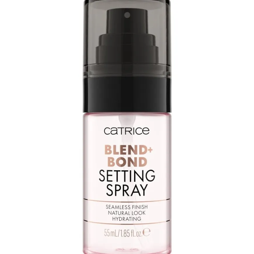 De Catrice Blend + Bond Setting Spray laat zich op de huid neerslaan als een gewichtloze, fijne nevel en zorgt voor een natuurlijke, frisse finish. De speciale eigenschap van deze spray is dat hij poeder en vloeibare texturen naadloos vermengt, wat kan bijdragen aan een bijzonder egale make-up look. De spray is veelzijdig: hij kan worden gebruikt om de huid voor te bereiden op make-up, tijdens het aanbrengen om het blenden te optimaliseren of als laatste stap om de uiteindelijke look te fixeren. De lichtgewicht formule, verrijkt met hyaluronzuur en haverextract, verzwaart de huid niet en is ook ideaal voor touch-ups tussen make-up applicaties door.