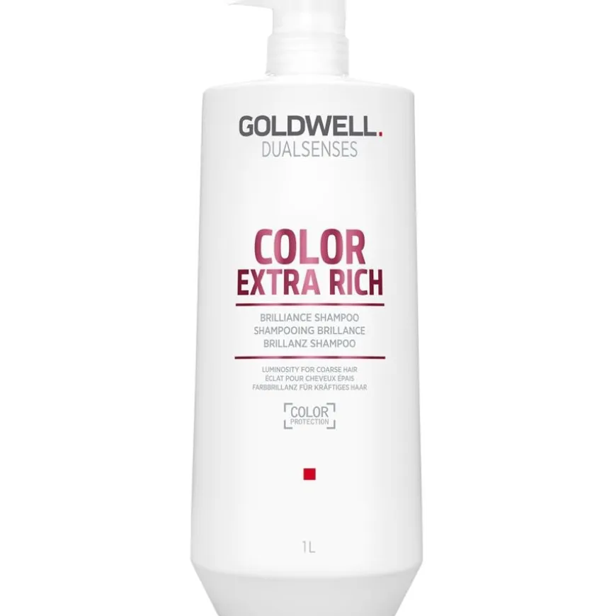 , maar ook precies de juiste verzorging voor sterk haar en temt zelfs weerbarstige manen. De Brilliance Shampoo wordt eenvoudig in vochtig haar gemasseerd en na een korte inwerktijd grondig uitgespoeld. Het proces kan indien nodig herhaald worden.De shampoo wordt aangevuld met de andere verzorgingsproducten uit de Colour Extra Rich lijn. Dit geeft gekleurd haar de perfecte all-round verzorging voor langdurige helderheid en kleurintensiteit. Kijk maar eens rond in ons veelzijdige assortiment!
