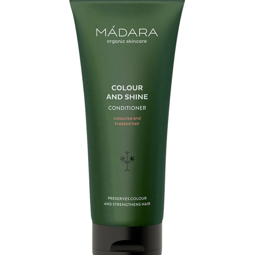 De Colour & Shine Conditioner, verrijkt met extracten van weegbree, paardenkastanje en Scandinavisch lijnzaad, beschermt de kleurpigmenten in je haar en voorkomt dat je favoriete haarkleur vervaagt. Tegelijkertijd dringen de actieve ingrediënten diep door in de haarstructuur, maken het haaroppervlak glad en temmen zelfs pluizig haar. Het haar wordt voorzien van voldoende vocht en droge en broze punten behoren tot het verleden. De doorkambaarheid van je haar is merkbaar verbeterd, het haar voelt zijdezacht aan en kan moeiteloos gestyled worden. Daarnaast geeft deze conditioner van MÁDARA je haar een geweldige, natuurlijk mooie glans.Voor een optimaal resultaat combineer je deze conditioner met de kleurbehoudende shampoo uit de Colour & Shine verzorgingslijn. Deze is natuurlijk ook verkrijgbaar in onze online shop.