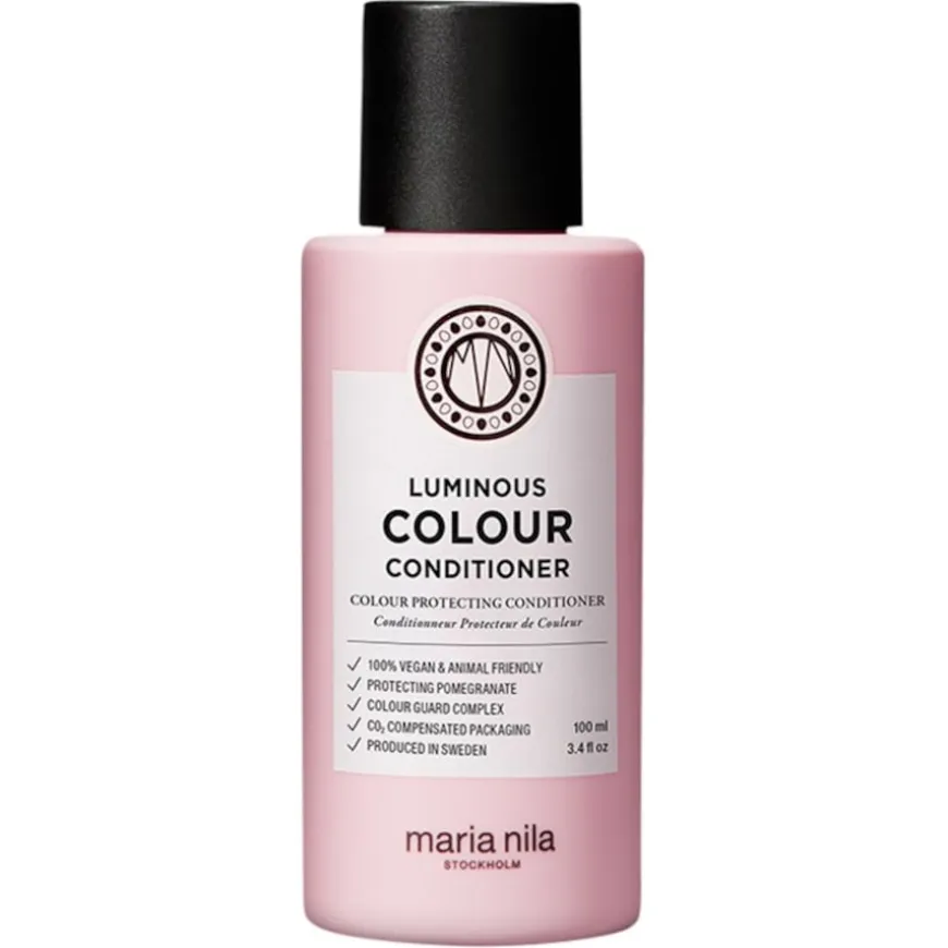 De Luminous Color Conditioner van Maria Nila is een hydraterende haarverzorging voor gekleurd haar. De ingrediënten versterken de haarstructuur en bouwen het haar van binnenuit opnieuw op. De conditioner bevat ook het Colour Guard Complex, dat in combinatie met voedend granaatappelextract het haar beschermt tegen schadelijke UV-stralen en vroegtijdige vervaging van de kleur voorkomt. Al na de eerste toepassing is het haar heerlijk zacht, makkelijker doorkambaar en wordt het niet langer statisch geladen.Na het wassen en aanbrengen van het haarmasker, de conditioner in vochtig haar masseren en goed uitspoelen. Het haar kan vervolgens worden gedroogd en gestyled zoals gewenst.