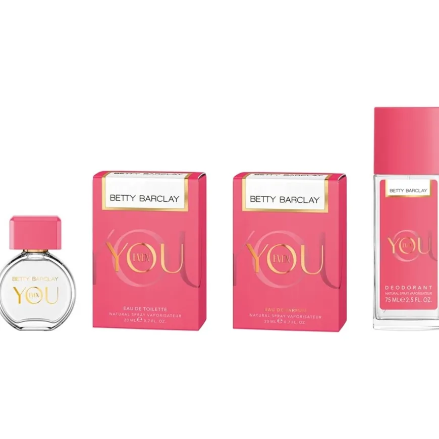 Bergamot en neroli zijn wrange noten in de topnoot. Citrusachtige geuren geven een deodorant spray frisheid en de huid ruikt aangenaam pittig en zoet. Betty Barclay gebruikt pruim voor de zoetheid. Een vrucht met een hoog fructosegehalte, wat terugkomt in de extracten. Even You is voor vrouwen die een heerlijke geur willen die hen elke dag in warmte hult. Voor adequate huidverzorging is één spray onder de armen aan elke kant voldoende. De deodorantspray is klein genoeg om in elke handtas te passen. Even You van Betty Barclay is geschikt voor alle huidtypes.