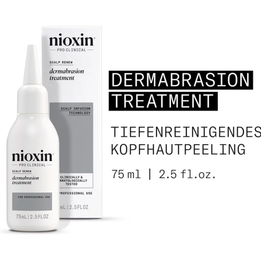 De Wella intensive care Dermabrasion Scalp Renew Treatment voor hoofdhuid en gezond haar is ontwikkeld voor gebruik in de salon, maar is ook geschikt voor thuisgebruik. Het ideale interval tussen afzonderlijke behandelingen is tussen de 30 en 45 dagen. Het product moet in een rasterpatroon op de droge hoofdhuid worden aangebracht en vervolgens worden ingemasseerd. De inwerktijd is 10 minuten. Daarna grondig uitspoelen en idealiter de behandeling aanvullen met een geschikt Nioxin 3-Step System.