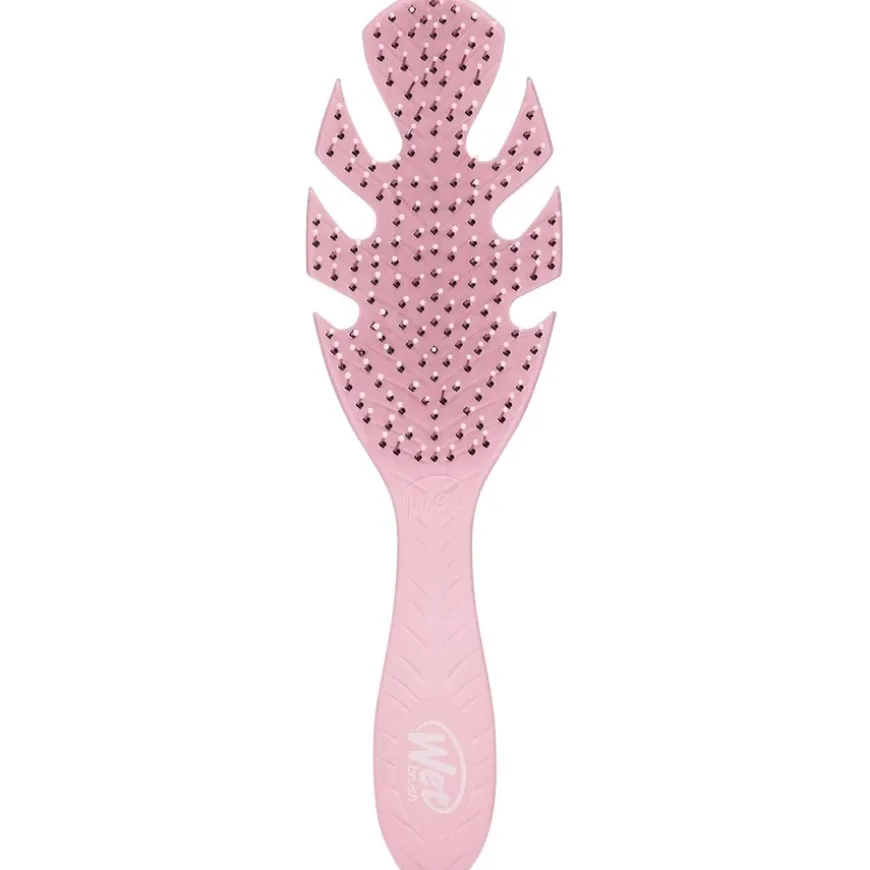De Wet Brush Detangler Pink maakt zacht kammen mogelijk zonder te trekken. De haarborstel uit de Go Green-serie bestaat uit een borstellichaam van 58% plantaardig kunststof en ultrazachte borstelharen. Met zijn speciale bladvorm glijdt de ontklitter als vingers door het haar en tangelt het haar bijzonder zacht met de IntelliFlex borstelharen. Tegelijkertijd temt de haarborstel zelfs weerbarstig haar met gemak. Het geheim? De borstelharen buigen lichtjes tijdens het kammen. Knopen en klitten kunnen pijnloos worden uitgekamd zonder te trekken of te scheuren. Het maakt niet uit of het haar droog of nat is. Maar dat is nog niet alles! Zacht kammen vermindert ook aanzienlijk haarbreuk en broze punten.