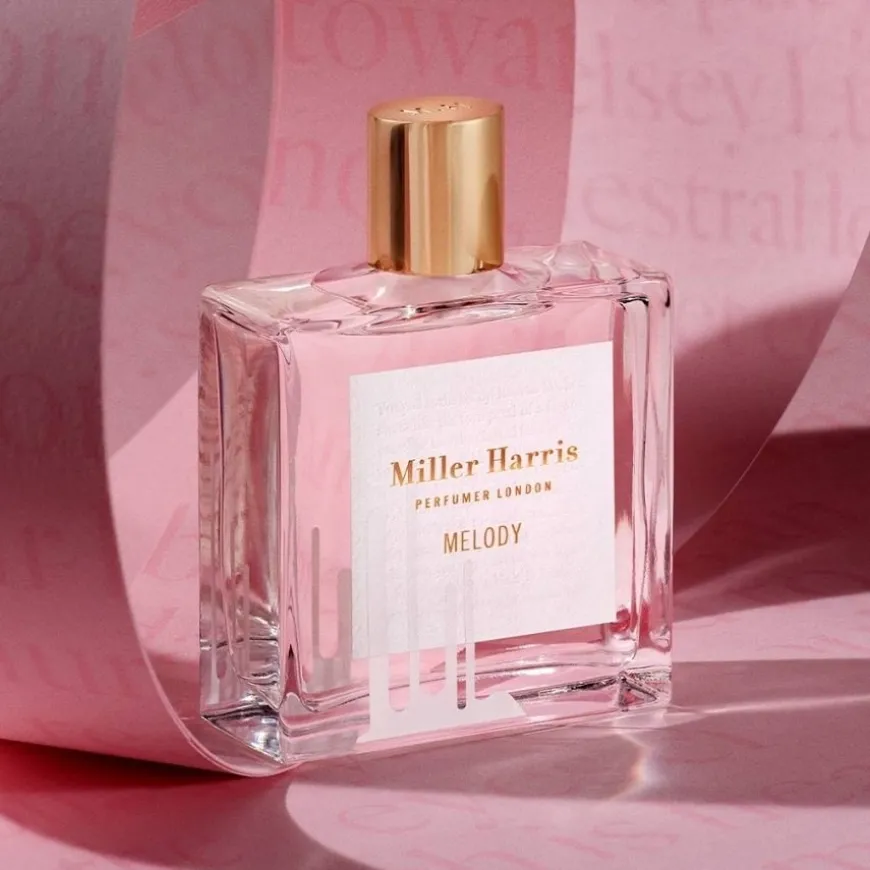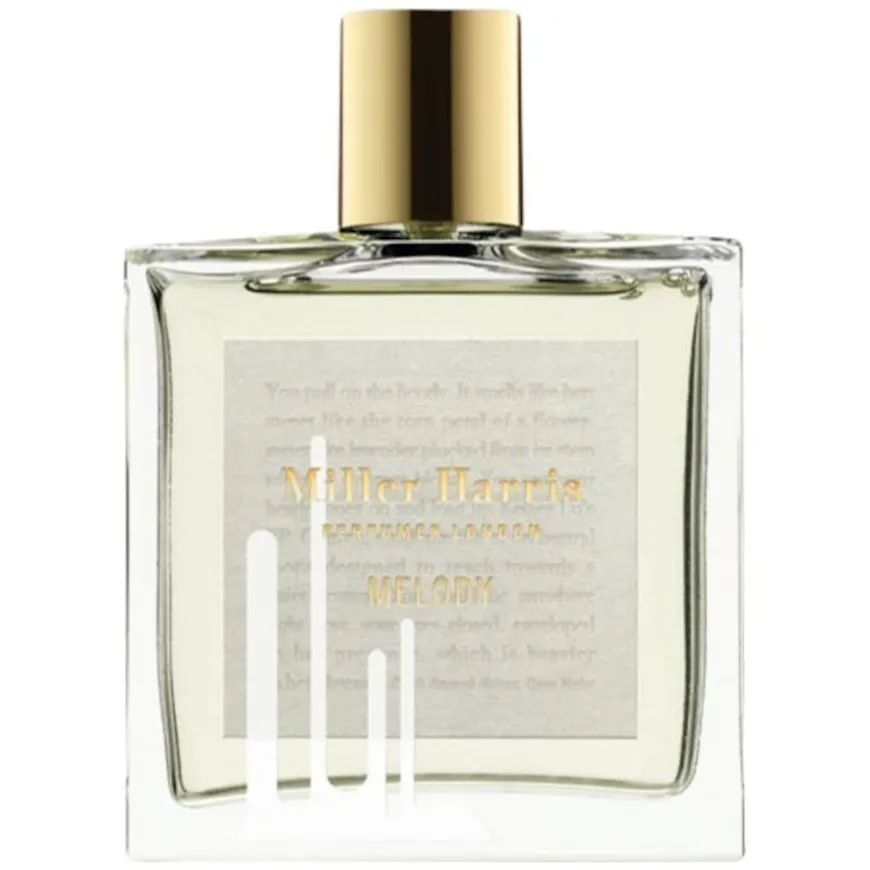 Geïnspireerd door een passage uit de roman “Open Water” van Caleb Azumah Nelson, is Melody Eau de Parfum van Miller Harris een geur die de tedere momenten van de eerste liefde vastlegt. De compositie uit de Stories Collection opent met een sprankelende noot van bergamot en zwarte bes, aangevuld met verse basilicum en een groen stengelakkoord. In het hart ontvouwt zich een boeket van damastroos en lavendel, begeleid door de subtiele nuances van Ceylonthee. De basis is een warme en zachte finish van witte muskus, vanille, cederhout en gerecycled kasjmierhout, die de geur diepte geeft. In overeenstemming met de filosofie van het merk worden natuurlijke en duurzaam gewonnen grondstoffen gebruikt. Gepresenteerd in een elegante, rechthoekige glazen fles met gouden accenten, belichaamt het ontwerp een moderne en minimalistische esthetiek.