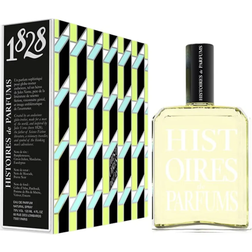 De Characters-geuren van het parfumlabel Histoires de Parfums zijn geïnspireerd op historische figuren – meestal kunstenaars. Meesterparfumeur Gérald Ghislain probeert de karakters van deze mensen in geuren te vangen en ze dichter bij ons te brengen. Jules Verne, schrijver van beroemde avonturenromans zoals “Around the World in 80 Days”, wordt vertegenwoordigd door het parfum 1828 Jules Verne Eau de Parfum Spray, dat uitdagende reiskoorts weerspiegelt met zijn mix van oriëntaalse en kruidige aroma’s.De 1828 Jules Verne Eau de Parfum Spray van Histoires de Parfums is gebaseerd op een exotische basis van zware wierook en natuurlijk ogend cederhout, vetiver en pijnboomschors. De hartnoot combineert nootmuskaat en peper, waardoor de creatie een stimulerende, hartstochtelijke kruidigheid krijgt. De topnoot verlicht de geur met sappige citrusvruchten, mandarijn, grapefruit en eucalyptus en geeft je frisheid en revitalisatie.