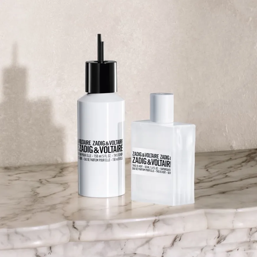 This is Her! van Zadig & Voltaire is een compositie die fascineert door zijn onmiskenbare dualiteit. De geur opent met een bloemige lichtheid van albiziabloesem en jasmijn, die een spannend facet krijgt door de subtiele kruidigheid van roze peper. In het hart ontvouwt zich een warm en romig samenspel van zoete vanille en een zacht kastanjeakkoord, wat de geur zijn gourmandkarakter geeft. De basisnoot van fijn sandelhout zorgt voor een elegante diepte en een langdurige aanwezigheid. Het resultaat is een moderne, bloemig-bosachtige geur die een fascinerende balans creëert tussen zachte en krachtige noten en een zelfverzekerde, onconventionele stijl benadrukt.