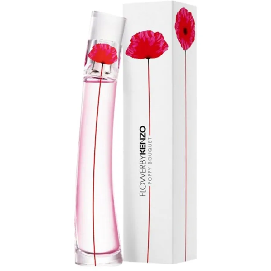 De KENZO FLOWER BY KENZO Poppy Bouquet Eau de Parfum Spray ontvouwt zich als een moderne, houtachtig-bloemige geurcompositie. Het opent met de sprankelende frisheid van nashi peer, die zorgt voor een lichte en heldere noot. In het hart van de geur ontvouwt zich een boeket van Bulgaarse roos en gardenia, die het parfum zijn bloemige karakter geven. De basisnoot van amandelhout rondt de compositie af met een warm en zacht romig facet. Het resultaat is een evenwichtige geur die bloemige lichtheid combineert met een subtiele diepte. De slanke, licht gebogen glazen flacon benadrukt het elegante karakter van het parfum. Met zijn heldere vorm en gestileerde klaproosbloem binnenin wordt het een decoratief object.