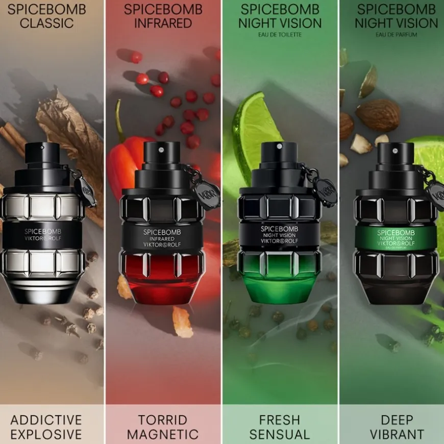 De Spicebomb Eau de Toilette Spray van Viktor & Rolf is een compositie gebaseerd op een spannend spel van contrasten. In 2012 gecreëerd door parfumeur Olivier Polge, ontvouwt de geur zich met een frisse topnoot van bergamot en grapefruit, die een speciale levendigheid krijgt door de accenten van roze peper en elemi. In het hart van de compositie ontmoet de warmte van kaneel en saffraan de intensiteit van rode peper. Deze kruidige hartnoot leidt naar een basis van noten van vetiver, tabak en wit leer, die de geur zijn diepe en mannelijke karakter geven. De eau de toilette is bijzonder geschikt voor de koelere seizoenen en de avond. De ervaring wordt afgerond door de iconische flacon in de vorm van een handgranaat, die de aard van de geur visueel benadrukt.