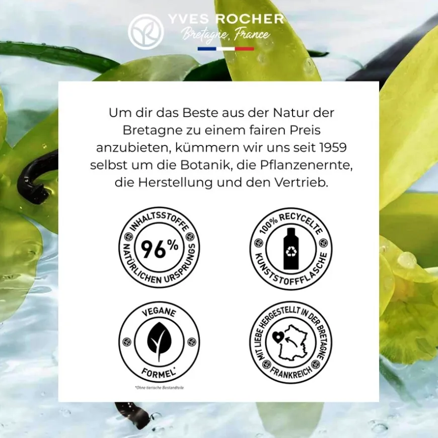 Yves Rocher Plant Cosmetics Research heeft Bourbon vanille geselecteerd, die wordt gekweekt volgens de traditie van het eiland Bourbon. Bourbon vanille komt uit de orchideeënfamilie. De betoverende geur omhult de huid, ontvouwt aanvankelijk een stralende noot en ontwikkelt geleidelijk een zoet, strelend karakter.98% ingrediënten van natuurlijke oorsprong