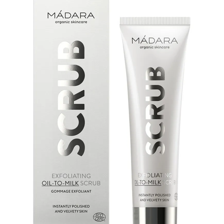 De Exfoliating Oil-To-Milk Scrub van MÁDARA reinigt de huid op milde wijze en verwijdert dode huidcellen, vuil en onzuiverheden. Het stimuleert de celvernieuwing en verheldert en egaliseert de huid. De formule is geschikt voor de onzuivere en gemengde huid. Het is veganistisch en vrij van paraffine, siliconen, parabenen en dierproeven. Masseer de scrub op oliebasis in de huid met ronddraaiende bewegingen. Voeg een beetje water toe om de olie te veranderen in een vederlichte melk. Spoel de textuur vervolgens grondig af. Geniet van een gladde, heldere en stralend mooie huid!