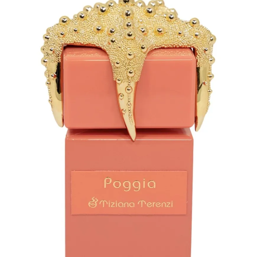 is de inspiratie voor de collectie. Het poggia-parfum zelf doet denken aan een boomgaard waarin exotische bloemen bloeien en die instinctief doet denken aan het Caribisch gebied. De ongewone flacon van het extrait de parfum verdeelt de meningen, precies zoals de ontwerpster Tiziana Terenzi wilde. Het maakt je nieuwsgierig om de flacon te pakken en het Poggia parfum aan te brengen, om te genieten van de betoverende weelde met een bovengemiddelde levensduur en sillage. Extrait de Parfum Poggia van Tiziana Terenzi is gecreëerd voor alle mensen die hebben gekozen voor iets speciaals en extraordinary.