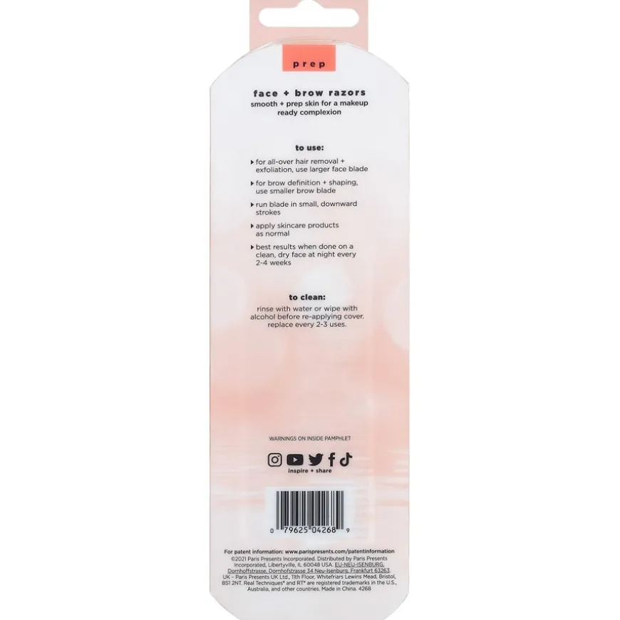 De slanke handgrepen van de Accessories & Beauty Tools zorgen voor een comfortabele hantering. De Real Techniques Face & Brow Razors passen ook in elk make-up tasje. Voor de beste resultaten scheer je je elke 2 tot 4 weken ’s avonds. De gezichtshuid moet hiervoor schoon en droog zijn. Je huidverzorgingsproducten kun je dan zoals gewoonlijk aanbrengen. Spoel de scheermesjes na gebruik af met water of desinfecteer met alcohol.