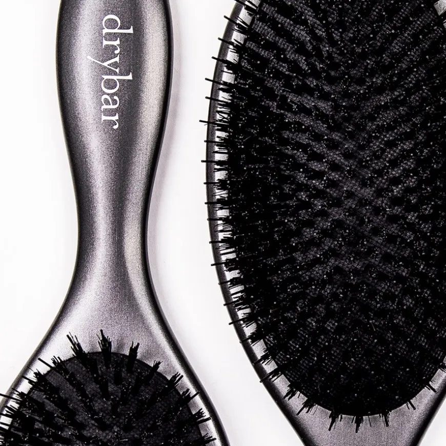 Een handgemaakte borstel van everzwijnhaar, ontworpen om het haar te laten glanzen en glad te maken, terwijl de hoofdhuid zachtjes wordt gemasseerd en gestimuleerd.