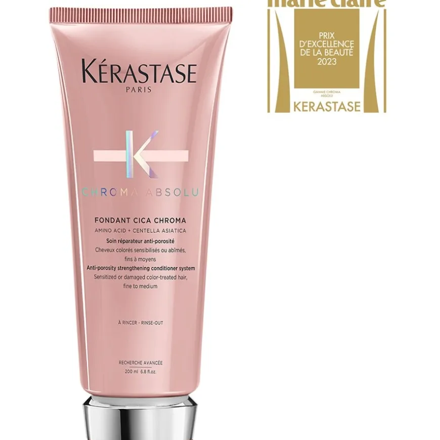 Geef je haar zijn oorspronkelijke glans terug met Fondant Cica Chroma van Kérastase. Voor een optimaal resultaat wordt regelmatig gebruik van het product aanbevolen. Na het wassen aanbrengen op gereinigd en handdoekdroog haar, inmasseren op de lengten en punten en na ongeveer 2 tot 3 minuten grondig uitspoelen. Chroma Absolu Fondant voorziet het haar van waardevolle voedingsstoffen en versterkt de haarstructuur. De soepelheid van de gestresste haarstructuur wordt onmiddellijk verbeterd en het haar is veel gemakkelijker weer doorkambaar. Het resultaat: het haar is onweerstaanbaar glanzend en ongelooflijk glad.