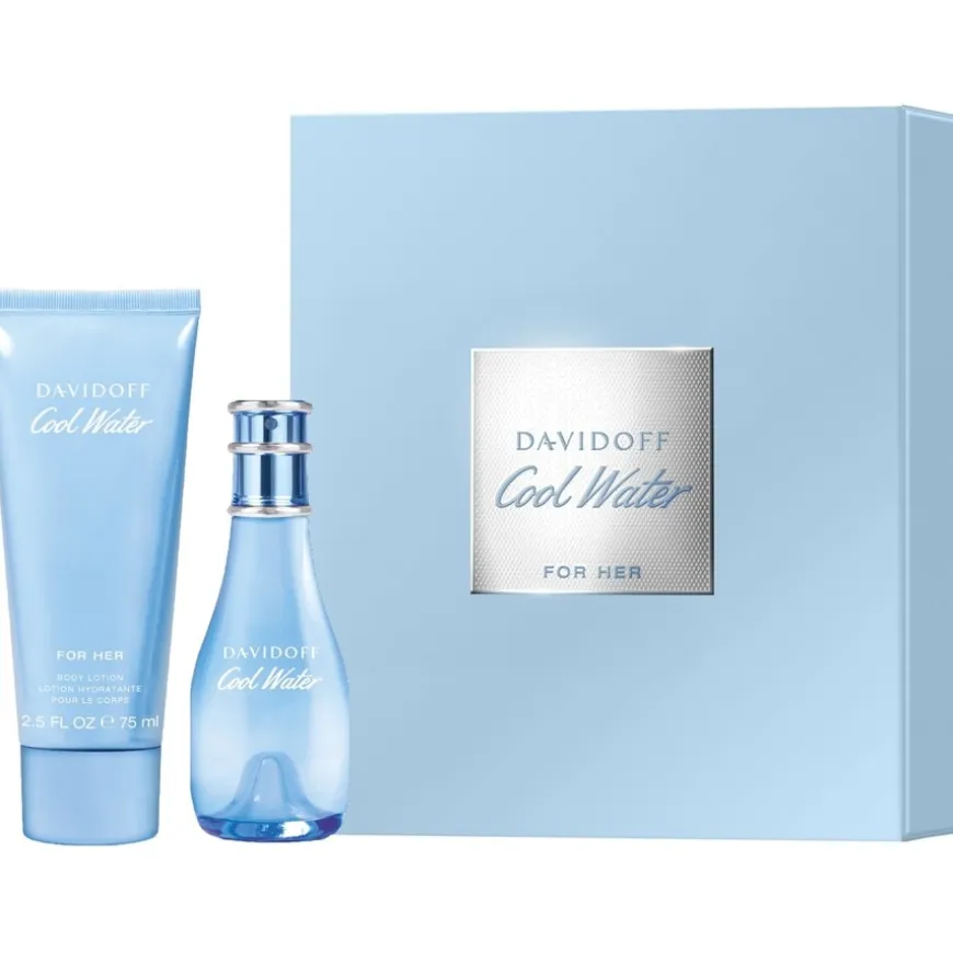 De Davidoff Cool Water For Her geschenkset presenteert een tijdloze klassieke geur in een harmonieuze collectie. De aquatisch-frisse geur, die al sinds 1996 bekend staat om zijn verkwikkende lichtheid, staat centraal. De compositie opent met sprankelende noten van citrusvruchten en meloen, die doen denken aan een koele zeebries. Naarmate de geur vordert, ontvouwen zich bloemige accenten van jasmijn en meiroos, die de geur een elegant facet geven. Een zachte basis van muskus, vanille, perzik en sandelhout rondt de geurbeleving af en zorgt voor een zachte finish. De set, verpakt in een stijlvolle, lichtblauwe doos, bevat zowel de Eau de Toilette spray als de bodylotion met dezelfde geur. Het ontwerp van de producten weerspiegelt het frisse karakter van het parfum met zijn heldere vormen en zachte blauwe en zilveren tinten.</p