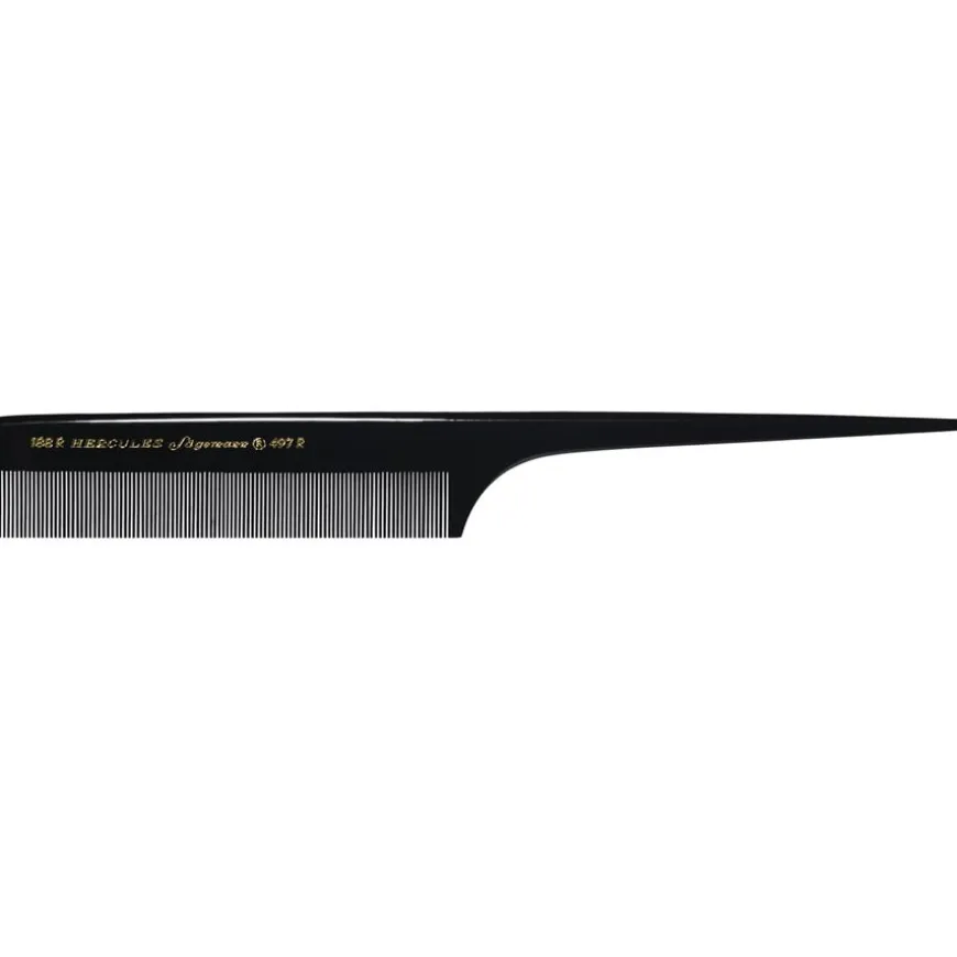 De steelkam model 188R-497R is een ideale kam voor veel kapsels en gelegenheden. Gebruik hem exclusief in de kapsalon of thuis of stop hem in je tas op reis. De steelkam is gemaakt van hoogwaardig eboniet, voedt het haar terwijl je het kamt en geeft het een prachtige, glanzende uitstraling. De punten van de tanden zijn zacht afgerond voor bescherming. De antistatische kam zorgt ervoor dat het haar niet geladen raakt tijdens het kammen. Na het kammen en stylen kun je het haar voorzichtig uit elkaar trekken met het handvat en het zo neerleggen. Het Hercules Sägemann label en modelnummer zijn duidelijk zichtbaar op de bovenrand van de handvatkammen.Het Hercules Saegemann label is van de New-York Hamburger Gummi-Waaren Compagnie. Het bedrijf, dat al meer dan 150 jaar actief is op de markt, is gespecialiseerd in kappersbenodigdheden. Het bedrijf produceert niet alleen elegante haarborstels en kammen, maar ook scharen van hoge kwaliteit.Overtuig uzelf van de uitstekende kwaliteit van de haarborstels & kammen en bestel de steelkam model 188R-497R bij Parfumdreams.