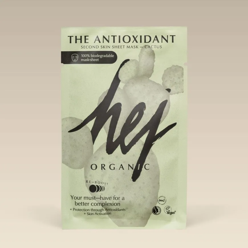 zodat je bij regelmatig gebruik tekenen van uitdroging kunt voorkomen. Sint-janskruid heeft een ontstekingsremmend effect en heeft een kalmerend effect op jeukende huidzones in het gezicht. Het antioxiderende effect is te danken aan het Sint-Janskruid dat erin zit en kan worden erkend als vertragend voor huidveroudering. De hennep in de maskers voorziet de gezichtshuid ook van waardevolle omega-3 vetzuren. Deze maken je huid aangenaam soepel.Breng het Antioxidant Sheet Mask van Hej Organic als volgt aan: Haal eerst het masker uit de beschermhoes en verwijder de beschermfolie. Plaats het masker vervolgens op je gezicht en vorm het met je handen naar de contouren van je gezicht. Nadat je het een kwartier hebt laten zitten, verwijder je het masker. Je kunt het resterende serum voorzichtig inmasseren. Eventuele resten kun je gemakkelijk verwijderen met een wattenschijfje.