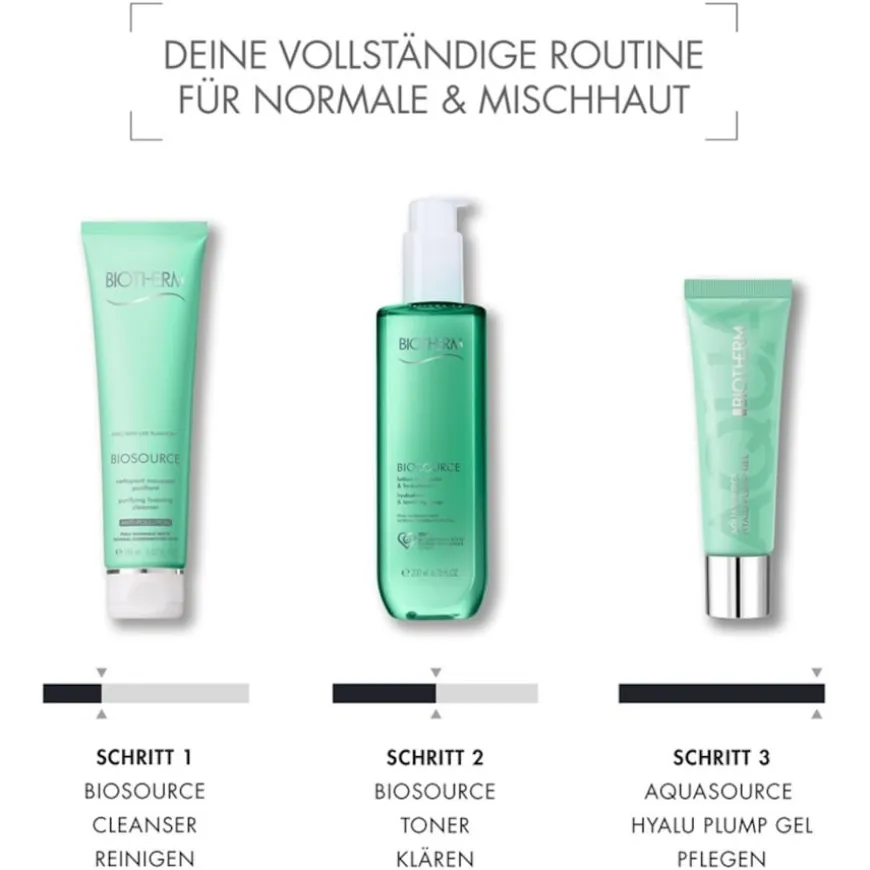 De Aquasource Hyalu Plump Gel van Biotherm is een hydraterend gelverzorgingsproduct dat speciaal is ontwikkeld voor de behoeften van de normale en gemengde huid. De formule combineert hooggeconcentreerd Life Plankton™ met hyaluronzuur. Na het aanbrengen lijkt de huid voller en heeft ze een natuurlijke glans. De gel laat de huid tot 48 uur lang intens gehydrateerd aanvoelen. Daarnaast kan de verzorging helpen om de huidbeschermingsbarrière intact te houden. Met het Water Lovers-programma geeft Biotherm het goede voorbeeld voor de bescherming van de oceanen, wat ook terug te zien is in de verpakking, die deels gemaakt is van gerecycled glas en plastic. Om te gebruiken masseer je de gel ’s ochtends en/of ’s avonds zachtjes in op een gereinigde huid.</p