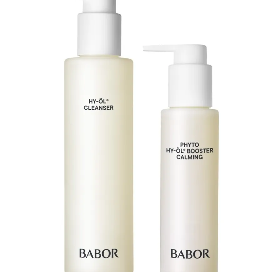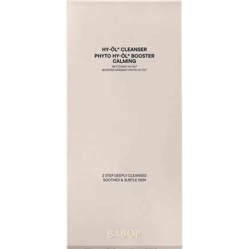 De BABOR Skin Care Calming Set is zeer zuinig in gebruik: slechts vier pompjes HY-OIL Cleansing zijn voldoende, gevolgd door twee pompjes Booster. De huidverzorgingsproducten maken gebruik van de kracht van pinda-, soja- en sesamolie om water- en in olie oplosbare vuildeeltjes op milde wijze van de huid te verwijderen. Vitamine E en bisabolol versterken het huideigen afweersysteem en zorgen voor een evenwichtige vochtbalans. De verzorging is verrijkt met kamille- en calendula-extracten, die beide kalmerende en ontstekingsremmende eigenschappen hebben. De producten kunnen zowel ’s ochtends als ’s avonds worden gebruikt.