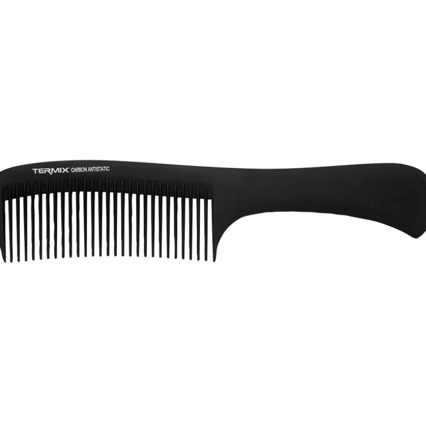 Met de Termix Carbon Kam 825 kun je nat en droog haar met evenveel gemak en vertrouwen stylen. Zoals alle carbon kammen glijdt hij zacht en veilig door het haar zonder het te beschadigen en behoudt zijn vorm zelfs bij de hoogste styling temperaturen. Gebruik deze kam voor secties, bijvoorbeeld voor professionele styling of om secties haar te scheiden bij het kleuren of bleken. De kam heeft een totale lengte van 22,6 cm. Hij heeft een ergonomisch gevormde handgreep en ligt daardoor zeer prettig in de hand.