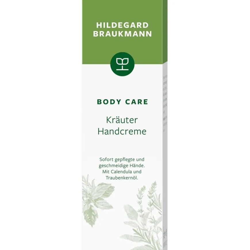 Heermoes en brandnetel, goudsbloem en duizendblad, salie, rozemarijn en kamille, plus druivenpit- en kamilleolie: de unieke samenstelling is een echte traktatie voor gestreste handen! De Body Care Herbal Hand Cream van Hildegard Braukmann moet daarom altijd bij de hand zijn: in de keuken, in de badkamer, maar ook op het werk en onderweg. Hij laat geen onaangenaam laagje achter, maar geeft je letterlijk in een handomdraai een heerlijk zacht huidgevoel. Het merk Hildegard Braukmann biedt al jaren een feelgoodprogramma voor lichaam en geest met uiterst effectieve en natuurlijke formules. De Body Care Herbal Hand Cream is een must-have, omdat het de huid van je handen helpt haar natuurlijke balans te hervinden.