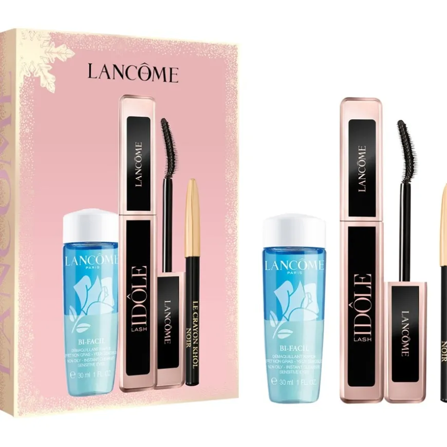 De Lancôme Lash Idôle Mascara Set biedt een zorgvuldig samengestelde selectie voor een complete oogmake-up. Het pronkstuk van de set is de Lash Idôle mascara in diepzwart. Het speciaal gebogen borsteltje is ontworpen om de wimpers te waaieren en elke wimper te bereiken. Dankzij de 360 micro-spikes wordt de kleur gelijkmatig en precies aangebracht. De bijgevoegde mini khôl eyeliner zorgt voor een intense en gedefinieerde oogopslag. Met de aangenaam romige stift trek je moeiteloos een exact lijntje dat de wimperlijn benadrukt. Het trio wordt afgerond met de Bi-Facil oogmake-up remover. De bifasische formule is ontwikkeld om op milde wijze make-upresten, zelfs waterproof texturen, van de oogcontouren te verwijderen.