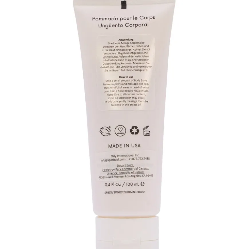 De Sparitual Body Salve is een huidverzorgingsproduct dat geschikt is voor dagelijks gebruik. Voordat je de zalf aanbrengt, moet je de tube zachtjes masseren zodat de verschillende ingrediënten zich optimaal met elkaar vermengen. Nu kun je een kleine hoeveelheid tussen je handpalmen wrijven en vervolgens op het lichaam aanbrengen. Je kunt de huidverzorgende zalf bijvoorbeeld na het douchen op de frisgewassen huid aanbrengen.