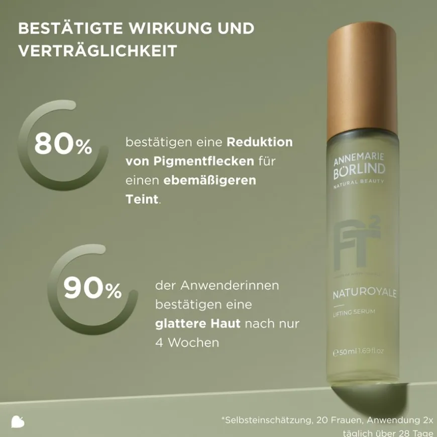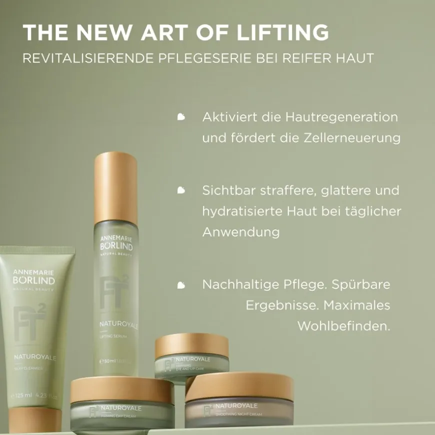 Het NATUROYALE Lifting Serum van ANNEMARIE BÖRLIND is een gezichtsverzorgingsproduct dat is afgestemd op de speciale behoeften van de rijpere huid. De zijdezachte textuur wordt snel opgenomen en laat de huid aangenaam glad aanvoelen. De kern van de formule is het Biolifting Complex met witte truffel. Dit wordt gecombineerd met extracten van de strandlelie, die kunnen bijdragen aan de visuele harmonisatie van hyperpigmentatie. De samenstelling met botanisch hyaluronzuur van de Chinese bevende schimmel en centella asiatica bladextract ondersteunt het natuurlijke vernieuwingsproces van de huid. Als onderdeel van de Naturoyale systeemverzorgingslijn vertegenwoordigt het serum een combinatie van geselecteerde natuurlijke ingrediënten en moderne wetenschappelijke bevindingen. De veganistische formule is bovendien vrij van siliconen, derivaten van minerale oliën, parabenen en microplastics.</p