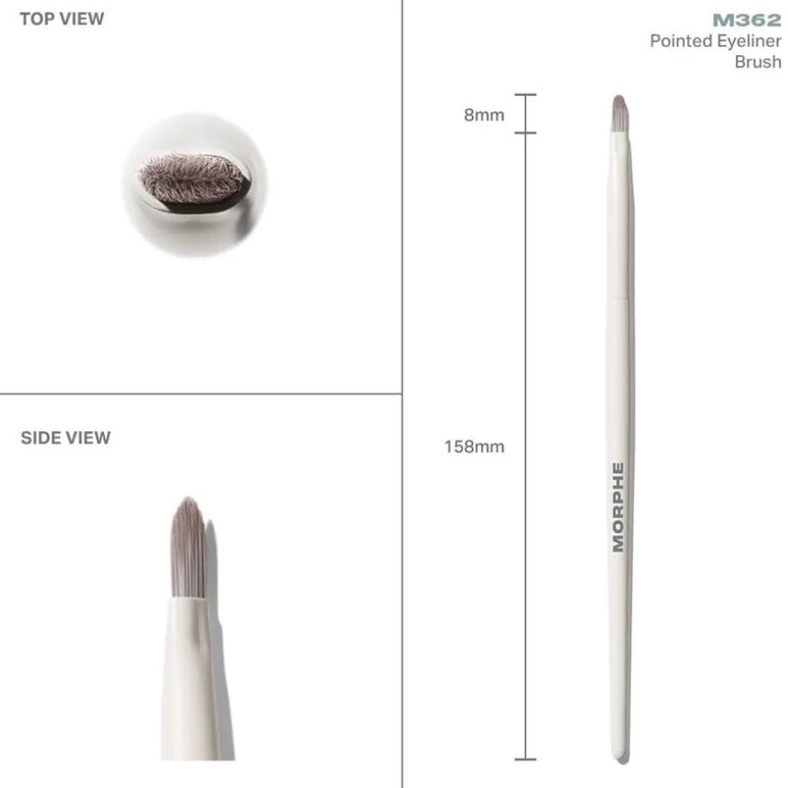 De Morphe M362 Pointed Eyeliner Brush oogpenseel is het perfecte gereedschap voor bijzonder fijn werk rond de ogen. Het is ontworpen om de wimperlijn te definiëren en geeft je make-up een heel speciaal accent. Je kunt de Morphe M362 Pointed Eyeliner Brush oogpenseel gebruiken om poeder-, vloeibare en crèmemake-up te definiëren, bijvoorbeeld door afzonderlijke lijnen te verlengen of specifieke gebieden op te vullen. De kwast is 100% veganistisch omdat er synthetische haren worden gebruikt. Deze zijn niet alleen extreem bestendig, maar ook heel gemakkelijk schoon te maken – en buigen niet meteen door, zelfs niet als je er hard op drukt.