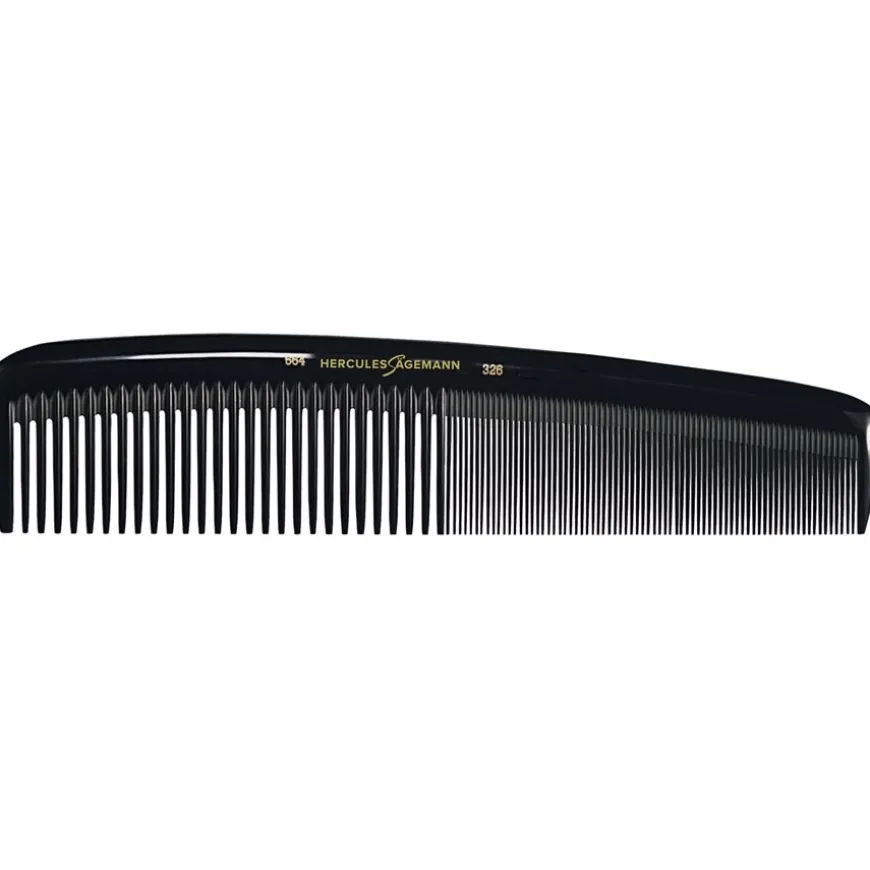De Meisterstück kam model 664-326 is gemaakt van eboniet, een glanzend materiaal met een reeks positieve eigenschappen. De kam is bijvoorbeeld antistatisch en voorkomt dat het haar geladen raakt tijdens het kammen. Het robuuste en toch flexibele eboniet zorgt ervoor dat de kam prettig in de hand ligt en dat je gemakkelijk en flexibel kunt werken. De kammen van het label zijn uitgerust met precies gevormde tanden. Ze zijn zacht afgerond aan de onderkant en masseren het haar en de hoofdhuid zachtjes tijdens het kammen en stylen.De haarborstels & kammen en andere producten van het Hercules Sägemann label worden vervaardigd door de New-York Hamburger Gummi-Waaren Compagnie (NYH) in Hamburg, een bedrijf dat gespecialiseerd is in de productie van goederen voor professionele kappers. Het bedrijf is al meer dan 150 jaar actief op de markt en exporteert haarborstels en kammen naar vele landen over de hele wereld.Bestel de Meisterstück kam model 664-326 en alle andere Sägemann producten in de Parfumdreams shop.