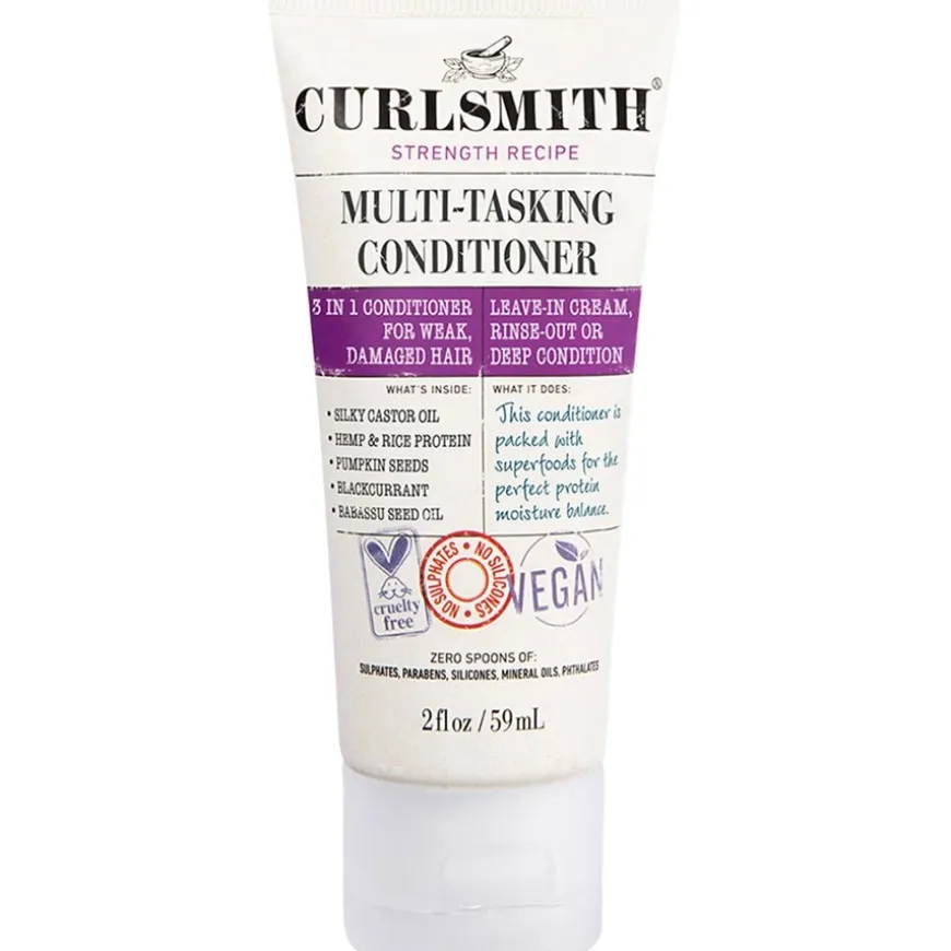De conditioners van Curlsmith zijn bedoeld voor iedereen die op zoek is naar zachte en verantwoorde haarverzorging. De multitasking conditioner is veganistisch en vrij van sulfaten, siliconen en parabenen. Het merk gebruikt ook geen kokosnoot en aloë vera in dit product, zodat mensen met een allergie het ook zonder aarzeling kunnen gebruiken. De conditioner is geschikt voor alle krultypes en ook voor steil haar, maar vooral voor krullen met een gemiddelde tot hoge porositeit. Voor een optimaal resultaat verdeel je de conditioner in het haar na het wassen en spoel je het direct uit, laat je het 15 tot 30 minuten intrekken of laat je het inwerken tot de volgende wasbeurt voor extra intensieve verzorging.