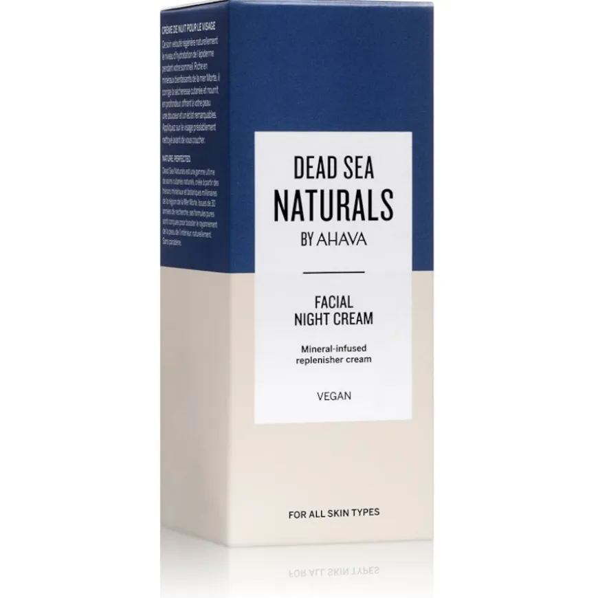 Dead Sea Naturals nachtcrème hydrateert en voedt de huid intensief tijdens de nachtelijke rustfase. De huid wordt gladder en zachter en voelt soepel en gerevitaliseerd aan. De formule is ideaal voor alle huidtypes. Het irriteert de huid niet en is zo zacht dat het ook geschikt is voor de gevoelige huid. Hij is ook vrij van minerale olie, parabenen, GMO’s en sulfaten. Masseer de nachtcrème elke avond na het reinigen in je gezicht. Verheug je op een zachte, gladde en stralend mooie huid!