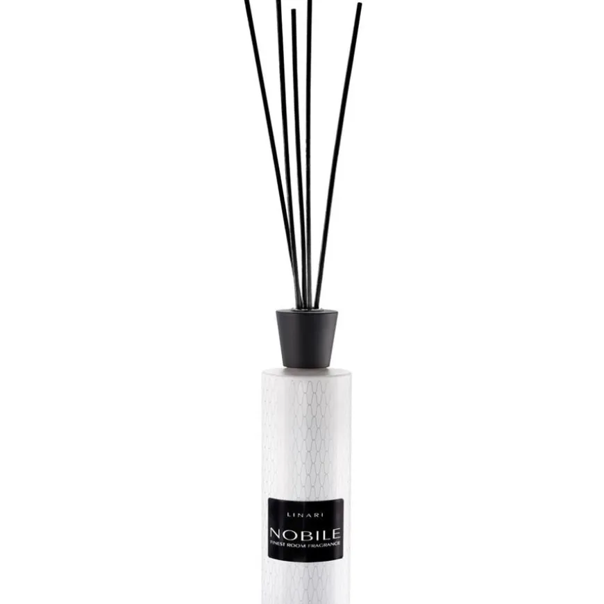 De topnoot van de Nobile geurverspreiders bestaat uit parelende citroen en bergamot. Dit wordt aangevuld met stralende groene thee en een subtiel akkoord van kruidige oregano. De Linari compositie is gebotteld in een hoogwaardige diffuser met een modern golfdesign, die ook een matzwart houten deksel heeft. Het elegante zilveren design wordt op aangename en effectieve wijze gecontrasteerd door de zwarte capillaire staafjes, waardoor de diffuser een hoogtepunt wordt in elke ruimte.