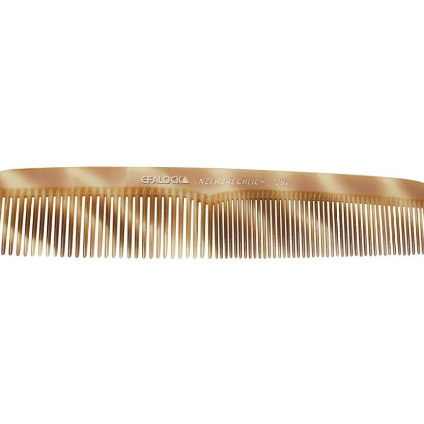 De borstels en kammen van het label zijn gemaakt van flexibel en duurzaam kunststof en worden gekenmerkt door hun lange levensduur en bestendigheid tegen hitte en chemicaliën. Dit maakt de kammen ideaal voor dagelijks gebruik in de studio. Ze kunnen niet alleen worden gebruikt om te stylen, maar bijvoorbeeld ook voor het modelleren of kleuren. De nylon dameskam 7,5 heeft stevige tanden die aan de punt licht afgerond zijn.Professionele kapsalons vertrouwen voor hun uitrusting op de hoogwaardige producten van Efalock Professional Tools GmbH. Het bedrijf is gespecialiseerd in haar, borstels en kammen, maar ook in andere segmenten. Deze omvatten werktafels en stoelen, verbruiksartikelen, elektrische apparaten en accessoires zoals capes om het haar te beschermen. Borstels & kammen van het label zijn natuurlijk ook geschikt voor privégebruik. Naast deze kam bieden we nog vele andere Efalock producten aan.