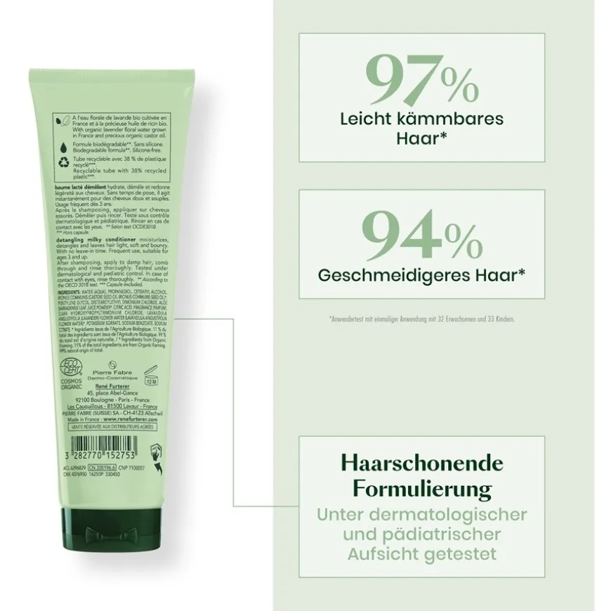 De natuurlijke ingrediënten en werkzame stoffen in René Furterer Naturia Detangling Milky Balm ontwarren het haar op milde wijze zonder het haar of de haarvezels te beschadigen. Het is heel gemakkelijk te gebruiken: gewoon op het haar aanbrengen, goed verdelen en vervolgens uitspoelen. Onmiddellijk daarna zul je niet alleen ontklit haar zien, maar ook gezond glanzend haar dat zacht en glad aanvoelt. Dit kwaliteitsproduct is volledig vrij van actieve ingrediënten van dierlijke oorsprong en is gemaakt in Frankrijk. Het bevat geen siliconen, waardoor het zelfs een goede keuze is voor de gevoelige hoofdhuid, probleemhuid of kinderen.