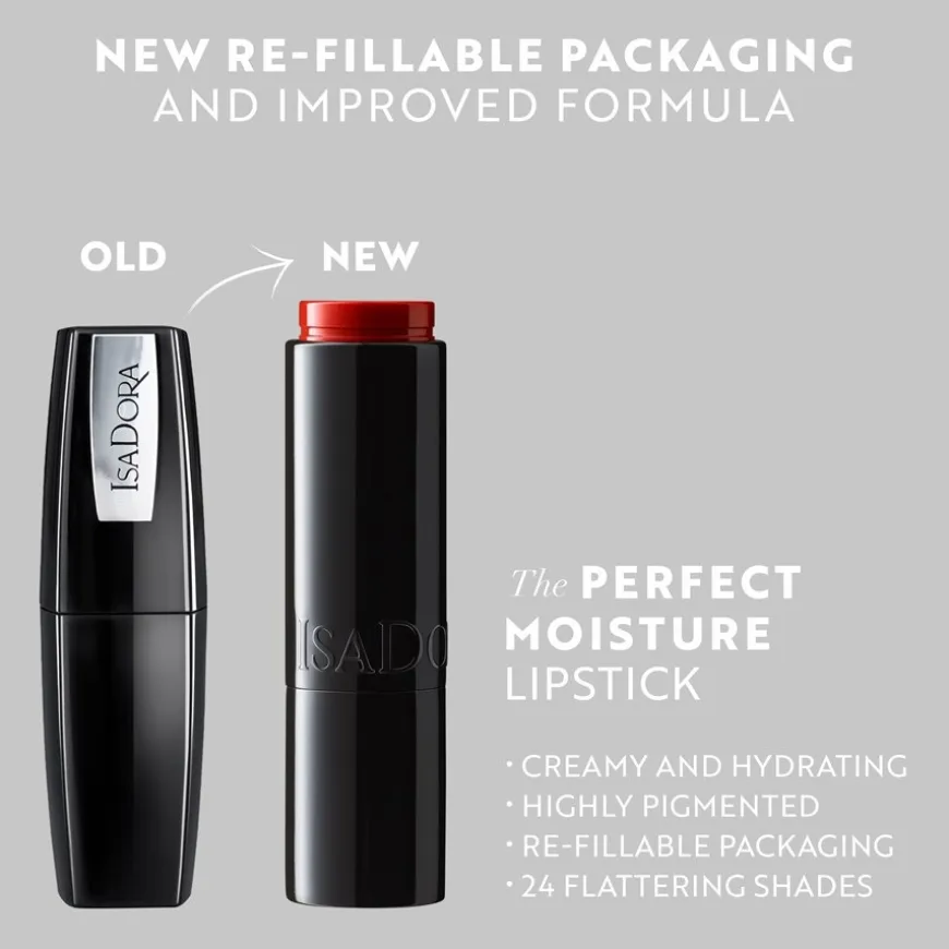De Isadora Perfect Moisture Lipstick is de perfecte aanvulling op je make-up voor de wintermaanden. Dankzij de rijke formule maakt de lipstick indruk met zowel de aangename textuur als de intense pigmentatie. De lipstick houdt niet alleen lang, maar kleurt de lippen ook intensief. Vooral bij het aanbrengen van make-up in de winter is het belangrijk dat een lippenstift er niet alleen goed uitziet, maar de lippen ook verzorgt en verwent. De Isadora Perfect Moisture Lipstick doet dit met caprin triglyceriden, die worden gewonnen uit kokosolie. Het materiaal hydrateert de huid van de lippen en voorkomt tegelijkertijd dat het oppervlak weer uitdroogt.