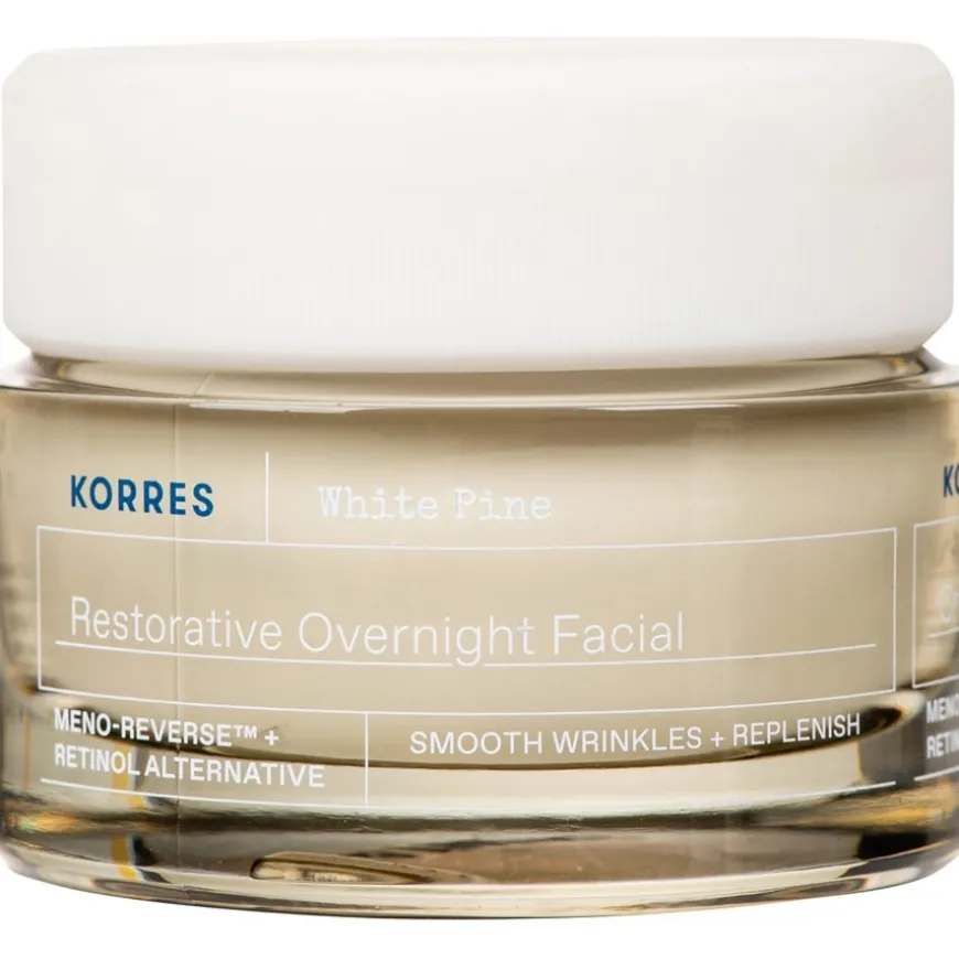 Rijke nachtcrèmes zijn een speciaal type huidverzorging die inwerken terwijl je slaapt. Tijdens deze periode herstelt en herstelt je huid zichzelf. De Regenererende Nachtcrème is speciaal samengesteld om dit natuurlijke proces te ondersteunen. Het kalmeert de huid terwijl je slaapt en vermindert roodheid en irritatie ’s nachts. De crème zorgt ervoor dat je teint er verfrist en fris uitziet als je wakker wordt.De lichamelijke veranderingen tijdens de menopauze eisen hun tol van de huid. Om dit te compenseren gebruikt Korres witte pijnboomschorsextracten voor de White Pine Meno Reverse huidverzorgingslijn. De ingrediënten hebben een positief effect op de structuur van de huid. De Regenerating Night Cream bevat ook een peptidemengsel uit artisjokbladeren, dat een natuurlijk verstevigend effect heeft.