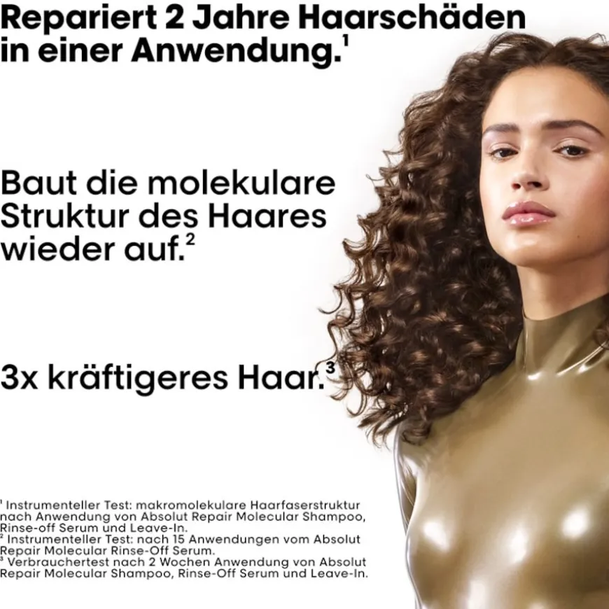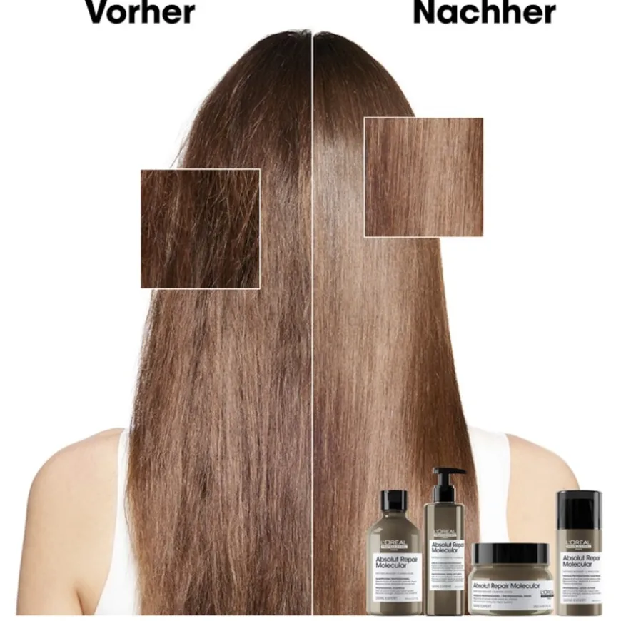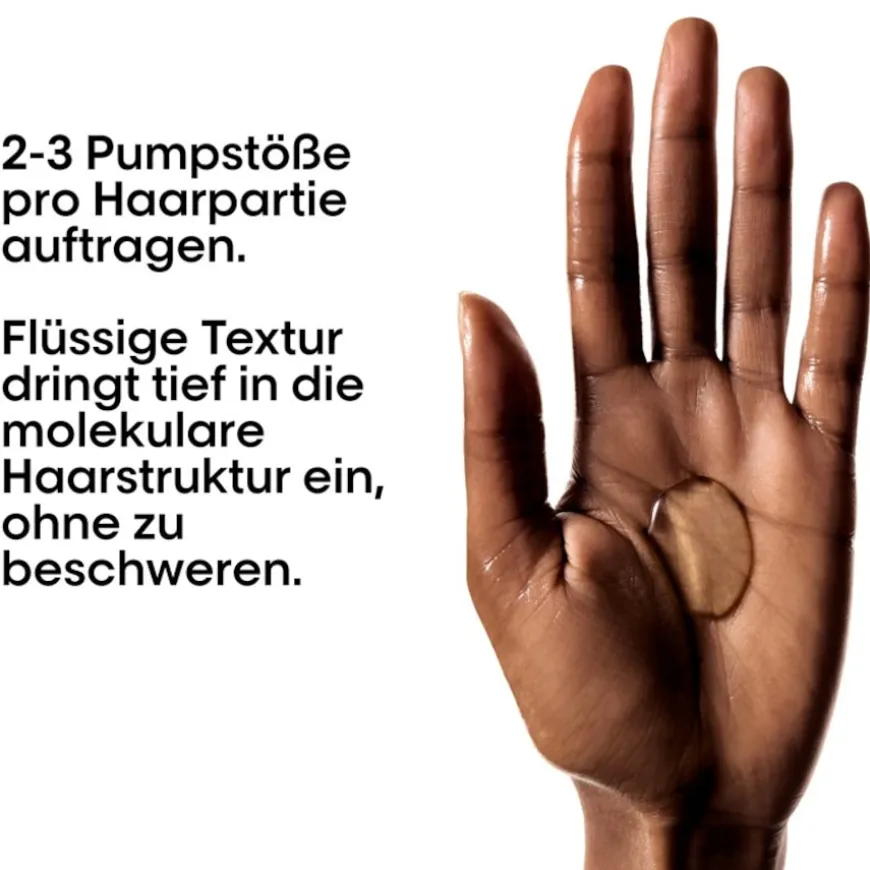 L’Oréal Professionnel Paris Serie Expert Absolut Repair Molecular Rinse-Off Serum is zeer eenvoudig te gebruiken: eerst het haar grondig wassen en vervolgens het oppervlak drogen met een handdoek. Ontwar het haar en verdeel het in twee tot drie secties. Breng nu het serum met ongeveer twee tot vier pompjes aan op het haar en masseer het goed in. Het serum wordt onmiddellijk geabsorbeerd, maar moet ongeveer twee minuten blijven zitten. Daarna kun je het serum weer uitspoelen onder stromend water. Als je haar erg beschadigd is, kun je nu extra verzorgingsproducten aanbrengen, bijvoorbeeld de herstellende leave-in verzorgingsproducten van de fabrikant.