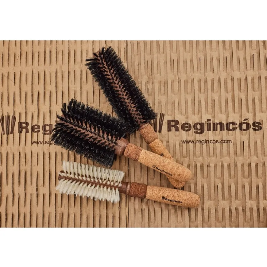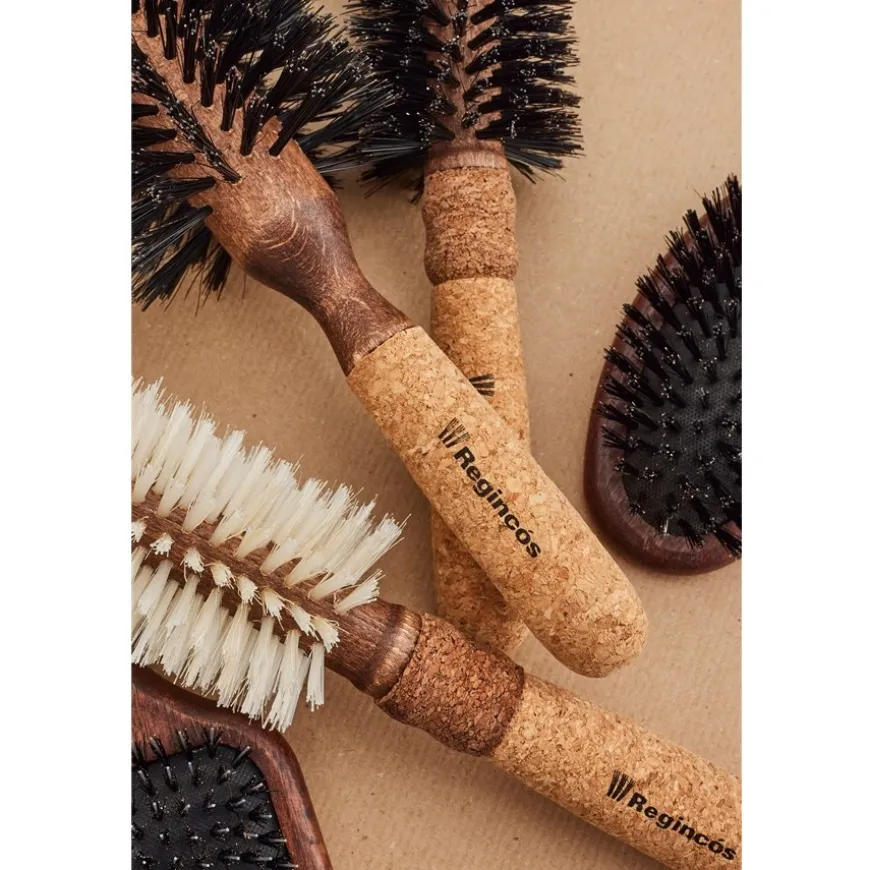 Het aanbod aan borstels is groot en de keuze is niet altijd gemakkelijk. Waarom zou je dan kiezen voor de ronde borstel Largo Ø 19/55 mm van Regincós? Als je de borstel voor het eerst oppakt en het lichte, tweekleurige handvat van kurk voelt, merk je meteen dat hij niet alleen lekker in de hand ligt, maar ook heel licht is. Bij het kammen valt op dat het haar niet statisch geladen wordt, maar meteen in de gewenste positie valt. De borstelharen zijn ook het vermelden waard. De meeste zijn gemaakt van everzwijnhaar, de rest is nylon versterkt met koolstofvezels. Dit maakt ze niet alleen duurzaam, maar geeft het haar ook een silky glans.Het schoonmaken van de Largo Ø 19/55 mm ronde borstel van Regincós is nauwelijks het vermelden waard, want je hoeft hem alleen maar af te nemen met een vochtige doek of onder de kraan te houden.
