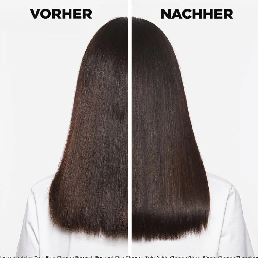 Is je haar erg beschadigd door stylen, kleuren, steilen of föhnen? Is het weerbarstig, mogelijk zelfs pluizig en wil het maar niet in een mooi kapsel worden omgetoverd? Dan moet je dit verhelpen met Serum Chroma Protect! Het beschermt het haar tegen zowel föhnhitte als UV-straling. Het heeft een intensief hydraterend effect en maakt het haaroppervlak glad. Het haar is moeiteloos te stylen, voelt heerlijk glad aan en heeft een zijdeachtige glans.Breng de Chroma Absolu Spray aan op handdoekdroog haar en verdeel het tot in de punten. Vervolgens kun je het aan de lucht laten drogen of föhnen. Het resultaat is een zijdezacht, vol kapsel!