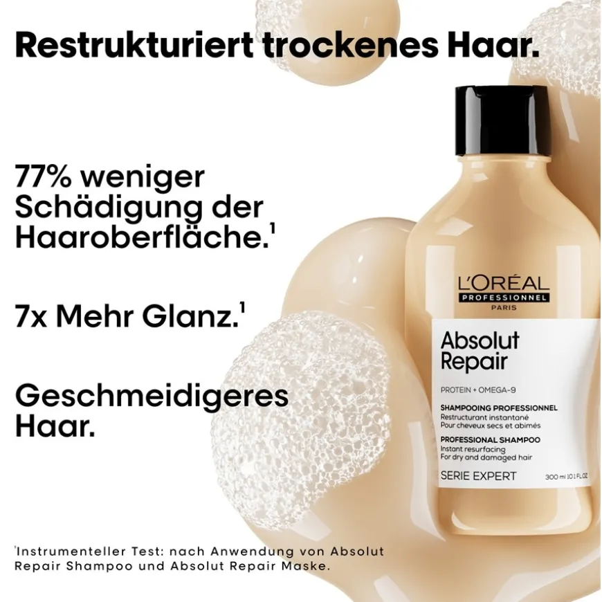 De exclusieve verzorgende shampoo wordt gewoon zachtjes in nat haar gemasseerd en vervolgens grondig uitgespoeld. De doeltreffendheid van de shampoo in het herstellen van beschadigd haar wordt duidelijk zodra je er doorheen kamt: het voelt extreem glad aan en de kam glijdt er als bij toverslag doorheen. Dankzij de uitgebalanceerde samenstelling is Absolut Repair Lipidium Instant Resurfacing Shampoo geschikt voor alle haartypes.
