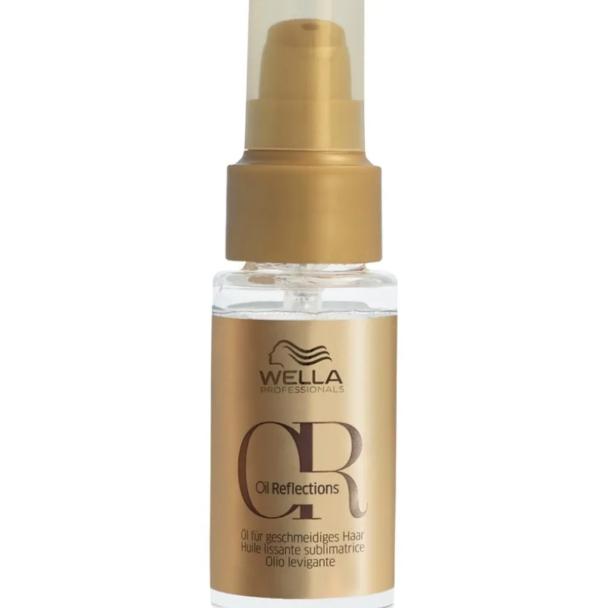De lichte Oil Reflections Smoothening Oil van Wella is een multi-zintuiglijke olie die je haarkleur direct accentueert met prachtige lichtreflecties. De lotion bevat macadamiazaadolie, avocado-olie en vitamine E. Terwijl macadamiaolie en vitamine E de haarolie antioxiderende eigenschappen geven, zorgt de avocado-olie voor intensieve verzorging en maakt het het haar heerlijk glad. Dankzij de speciale formule vormt de olie een beschermend laagje om het haar en beschermt het tegen schadelijke invloeden van buitenaf. Tegelijkertijd geeft het je haar tot 86 procent meer glans. De haarolie heeft ook een verleidelijke geur van vanille, ylang-ylang en patchoeli.Breng een paar druppels van de olie aan op vochtig haar om je haar intensieve verzorging en souplesse te geven. Voor bescherming tegen hitte breng je een paar druppels van de haarverzorging aan in vochtig haar voor het stylen. Voor intense glans en prachtige lichtreflecties breng je de olie aan als finish na het stylen.
