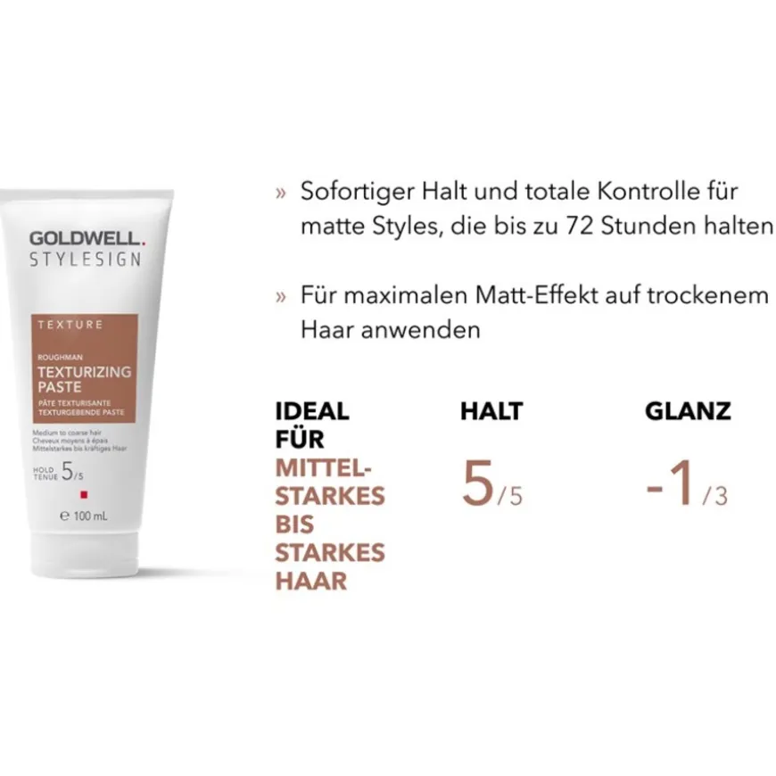 In de StyleSign verzorgingslijn biedt Goldwell verschillende haarstyling producten die textuur aan het haar geven als Texturising Paste. Eenvoudige styling en hoogwaardige verzorging staan centraal. Elke stijl krijgt dat speciale iets met deze geweldige producten. Het haar wordt verzorgd en tegelijkertijd beschermd. Doordachte ingrediënten die een gemakkelijke toepassing garanderen, worden gecombineerd met coole extra effecten zoals matte stijlen, intensieve texturen en meer. De pasta’s bevatten bamboe-eiwitten voor een gemakkelijke en fundamenteel elastische styling. Het haar blijft daardoor flexibel en ziet er natuurlijk uit.