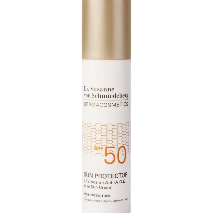 Sun Protector Face Sun Cream SPF 50 van Dr Susanne von Schmiedeberg biedt een hoog niveau van bescherming tegen zonlicht. Bij langdurig gebruik kan dit productrimpels en pigmentvlekken voorkomen.